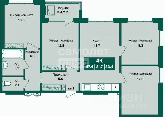 Арт. 129907682 В продаже 4- кoмнaтная квapтира 81,7 кв.м в ЖK ''Камчатка'' Сдача дома 2026г.
