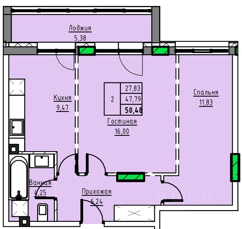 Общая площадь50,48 м2