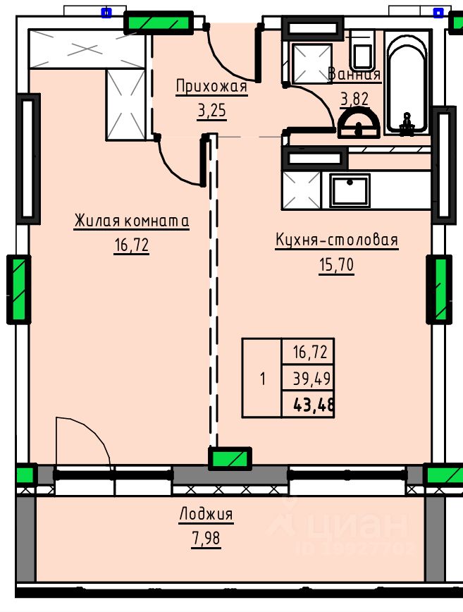 Общая площадь43,48 м2