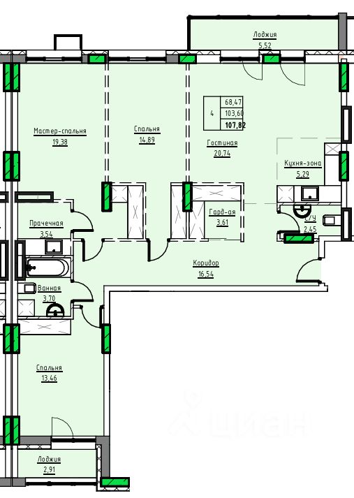 Общая площадь107,82 м2