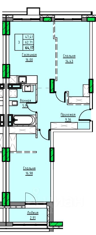 Общая площадь64,17 м2
