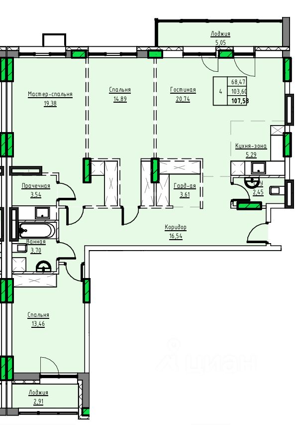Общая площадь107,58 м2
