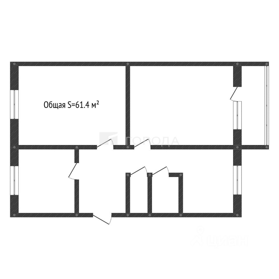 Общая площадь квартиры составляет 61,4 кв. м, жилая — 42 кв. м, площадь кухни — 6 кв. м. Высота потолков — 2,5 м. Центральное отопление обеспечит вам комфорт в холодное время года.