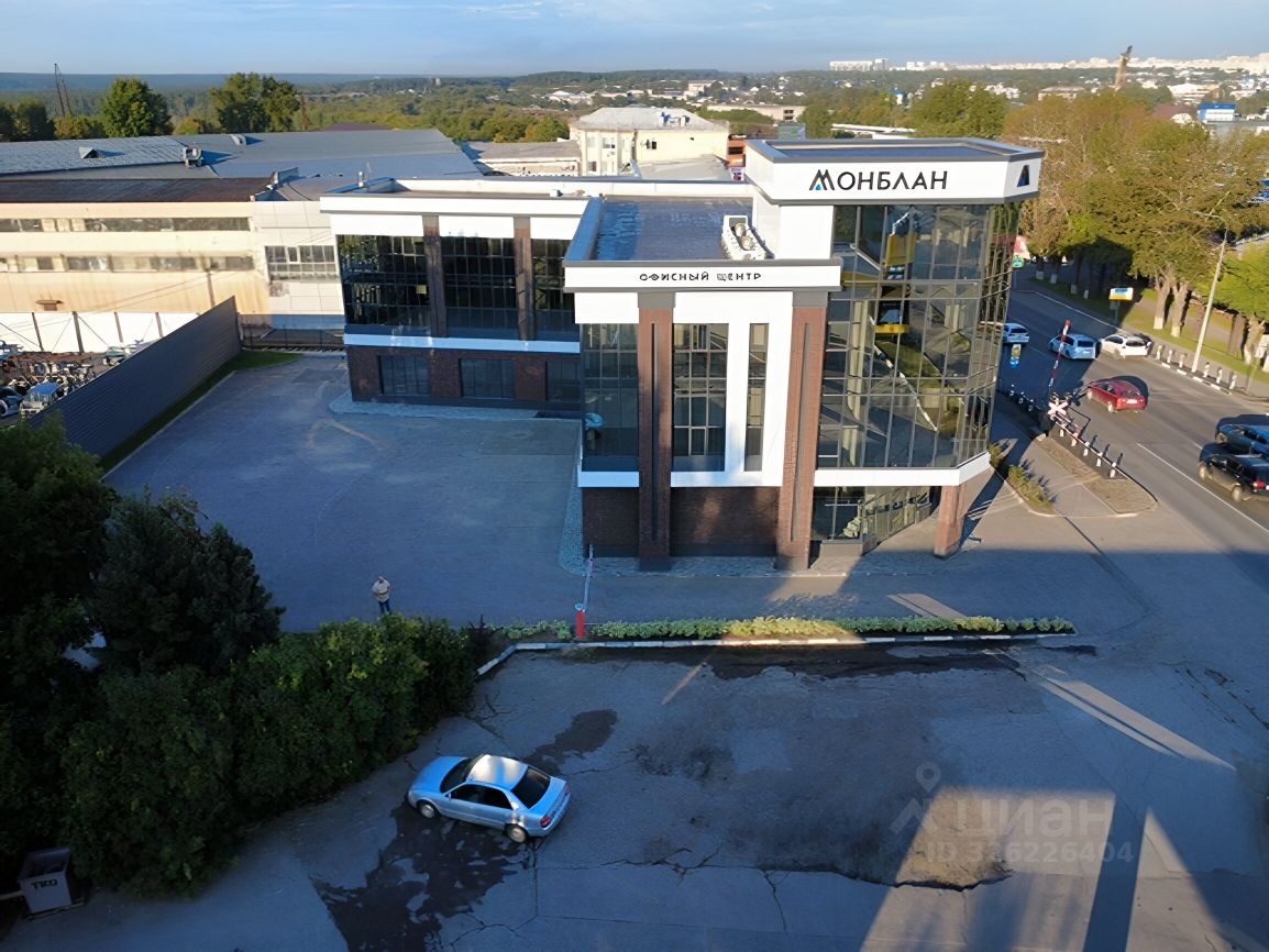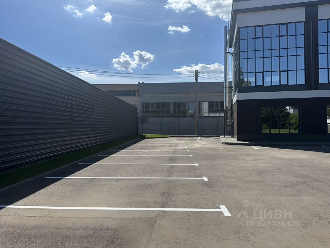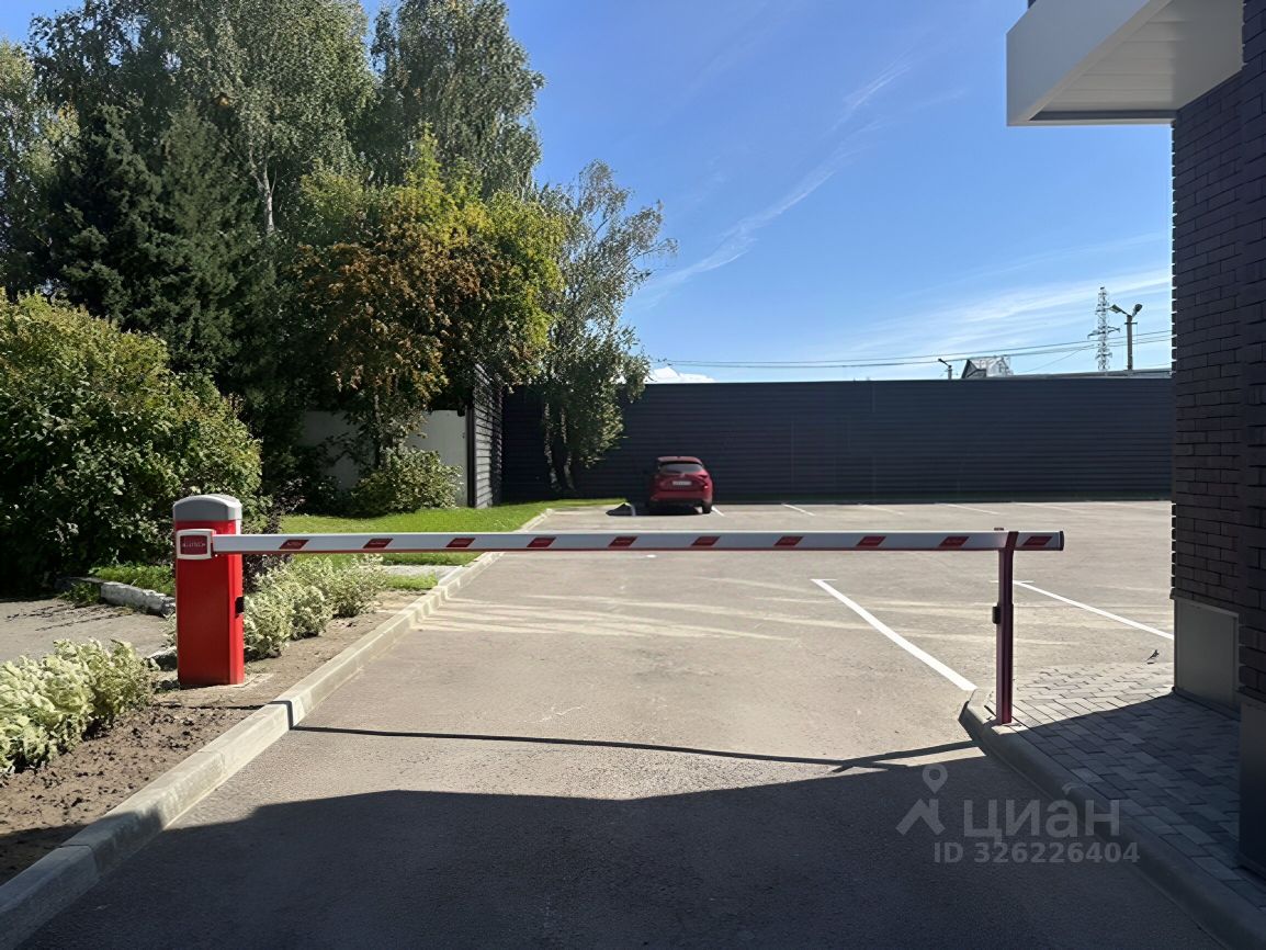 Большая благоустроенная территория для парковки на территории здания на 30 автомобилей со шлагбаумом.