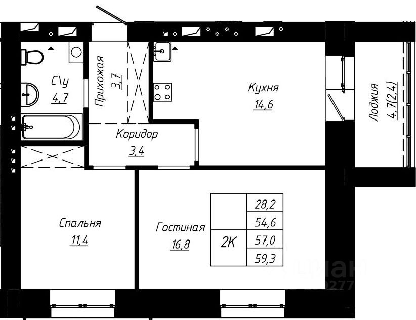 продам 2-к, Чернышевского, 189 корп. 29 120 000 ₽