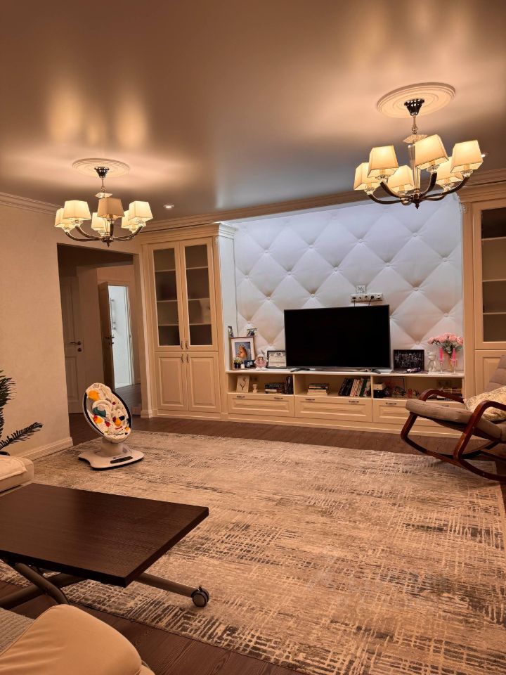 Продажа от собственника! В доме шикарная звукоизоляция , в квартире зимой тепло . На кухне , в прихожей, в зале , на балконе , в ванных комнатах есть теплый пол . В квартире : 3 спальных комнаты, 3 гардеробных, 2 санузла, зал , кухня и прихожая . Всю мебель и технику оставляем . Техника : холодильник haier. Микроволновка: bork Посудомойка, духовка, плита : age 2 кондиционера: Kenyatta 2 Водонагревателя Стиральная машина с функцией сушильной Вся мебель выполнена на заказ : МДФ в пленке Межкомнатные двери : София