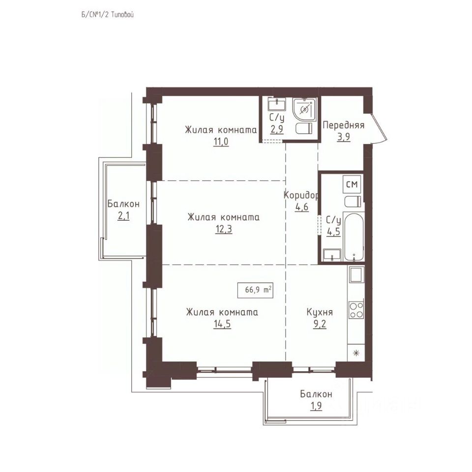 Общая площадь66,9 м2