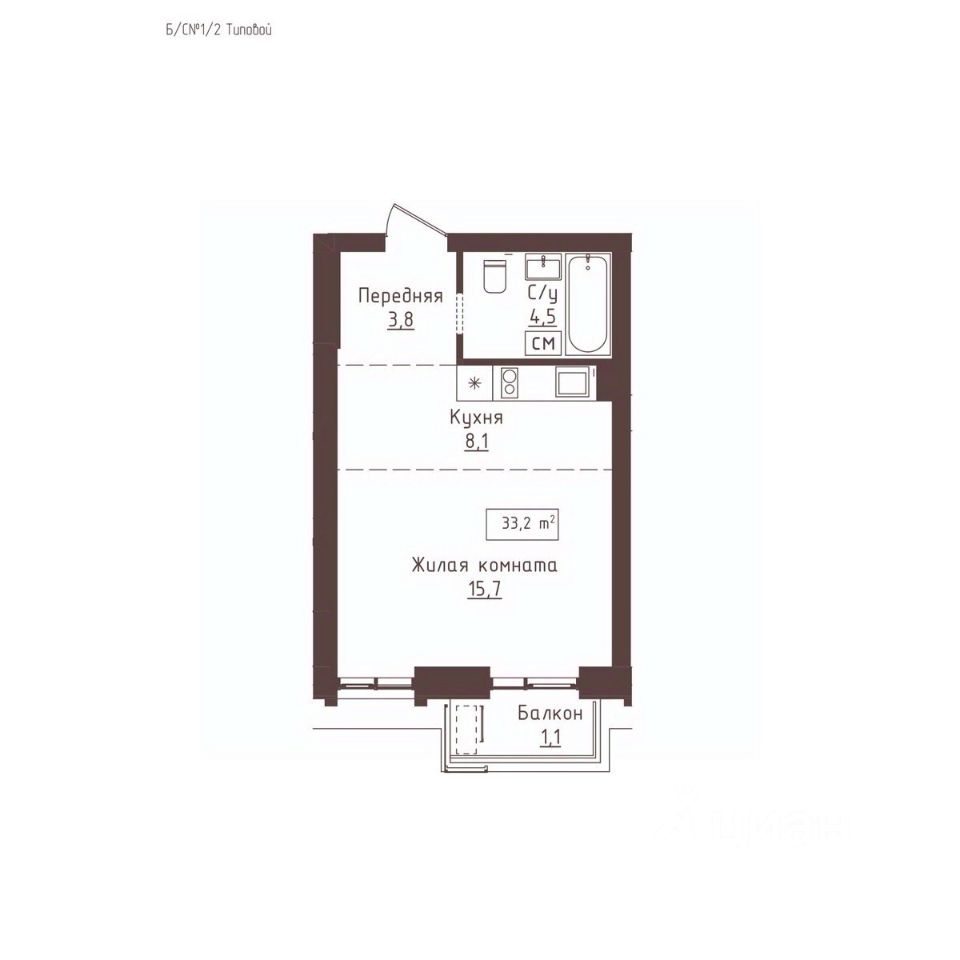 Общая площадь33,2 м2