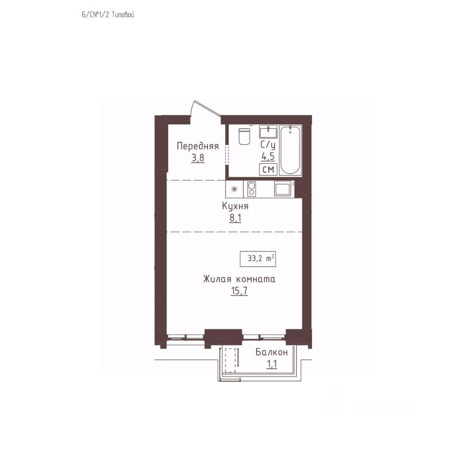 продам 1-к, Папанинцев, 1576 806 000 ₽