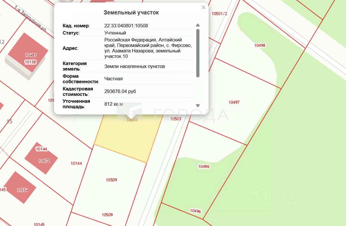 Кадастровый номер: 22:33:040801:10508